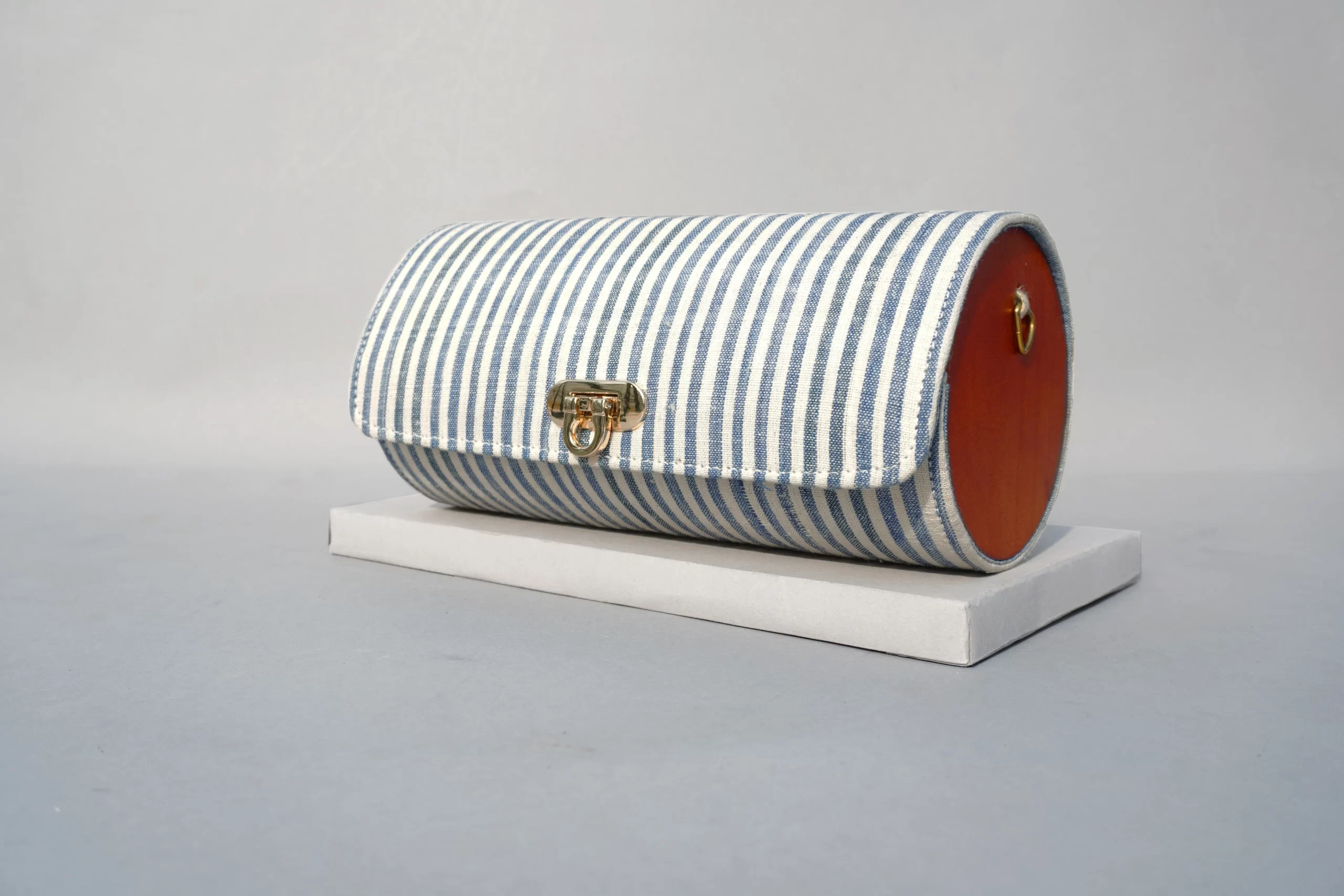 The Blue-Yellow Stripe Shoulder Cylindrical Bag