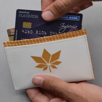 Organize your cards with our eco-friendly Card Holder. The upcycled printed PVC fabric outer, complements a handloom inner, a testament to the artistry of traditional craftsmen in India. Choose a card holder that not only adds a touch of elegance but also contributes to sustainable living. By chosing bag-a-tale, you not only cut down on heavy duty PVC fabric waste going to landfill and replace leather but also you bag a product which is very sturdy and lasts many times longer than traditional products. These products come with a 3 year replacement – No Questions Asked warranty.