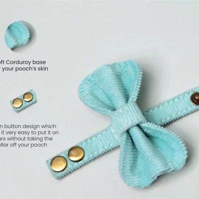 Cute little bowties for your cute furry friend. These are made of Organic Corduroy Cotton and comes with a clip-on button design which makes it very easy to put it on collars without taking the collar off your pooch. A subtle yet significant pop of color for your playful and cheerful companion. The design makes it comfortable for you to put the bowties on your active pooch in no time.