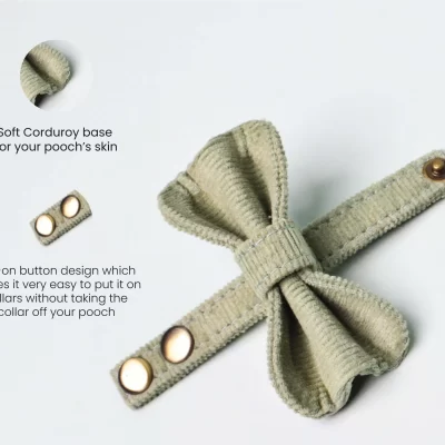 Cute little bowties for your cute furry friend. These are made of Organic Corduroy Cotton and comes with a clip-on button design which makes it very easy to put it on collars without taking the collar off your pooch. A subtle yet significant pop of color for your playful and cheerful companion. The design makes it comfortable for you to put the bowties on your active pooch in no time.