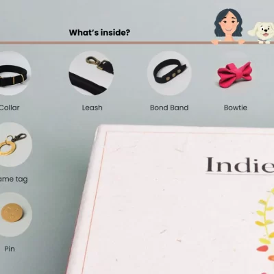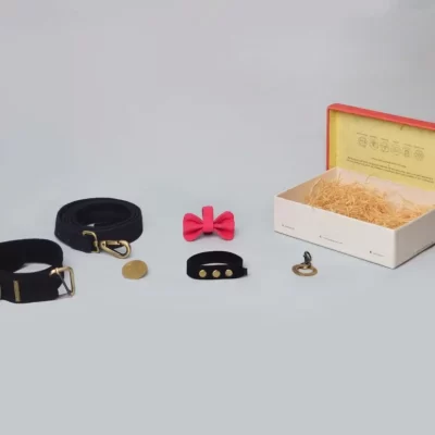 A complete collection of accessories to make and celebrate the bond between you and your pawdorable Family Member! It includes our Collar and Leash which are made using organic materials that are soft on skin and are strong as well. A custom Name Tag for your dog made of brass. A Pin and a Bowtie which adds the extra charm to your paw friend. A matching bracelet as a friendship collar which celebrates the bond between you and your pet. The bracelet closes with three snap buttons so they can fit every wrist size.