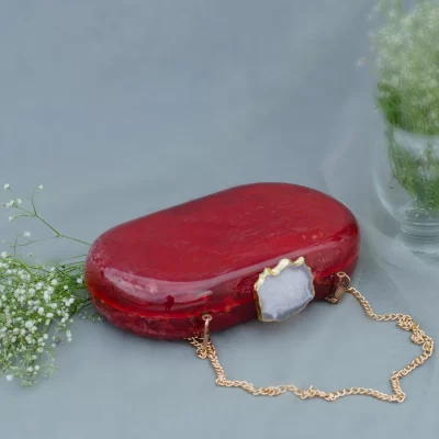 Classic and Timeless designs that you can cherish forever! This Clutch is made of Red Corian Marble – an heirloom piece that you can pass it on from generation to generation to keep the bond alive. Express yourself with this edgy Corian Clutch, handcrafted with agate stones that are irreplaceable for its natural shape and texture. It can be a perfect evening accessory to style your festive as well as your party looks and comes with a golden Sling. The Agate stone can vary in shape and color as it is a natural stone.